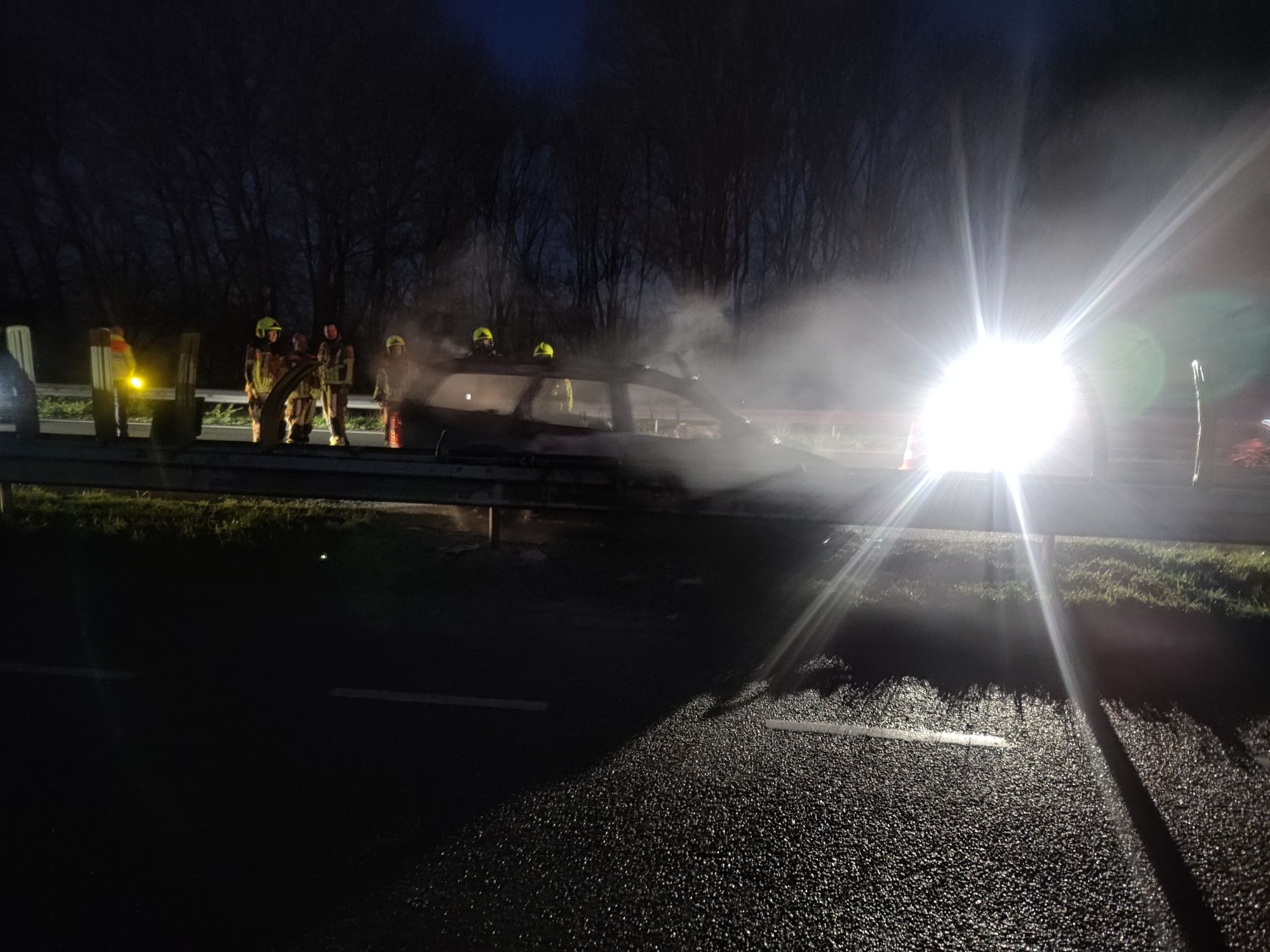 De Brandweer druk bezig met het blussen , de 2 inzittende lagen