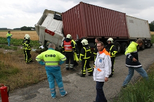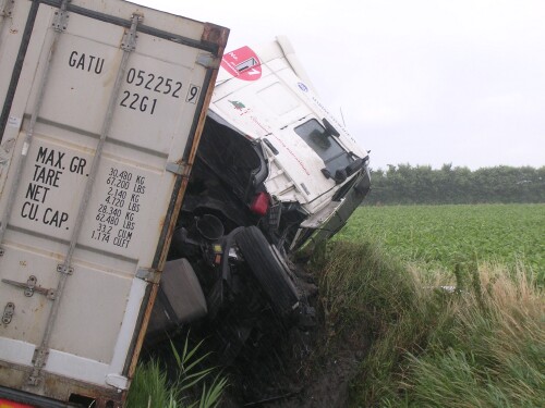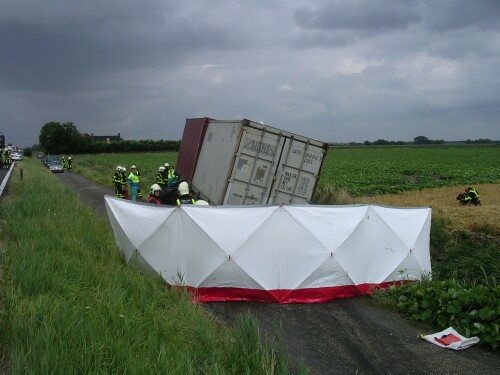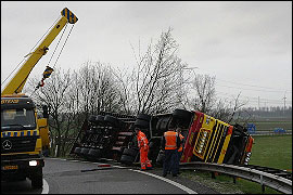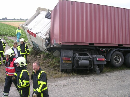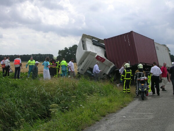 Vermoedelijk is de lading in de bocht gaan schuiven, waarna de