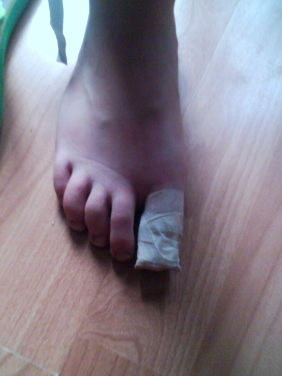 2 : Snee in vinger : schoongemaakt en verbonden.